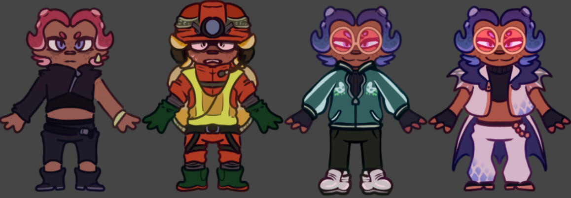 If you ever want an oc whether its a mascot, persona or just anything really i can help you with that!I will work carefully through the whole process of creating a character that best suits you. You can give me a personality, a mood board, an aesthetic, or even just give me a few colours and descriptions! I can even create OCs inspired by exising characters, like making an anthro version of a given character.Below are character designs that i had made, either for others or myself.( Some are stylized versions of existing characters but gets the same point across )